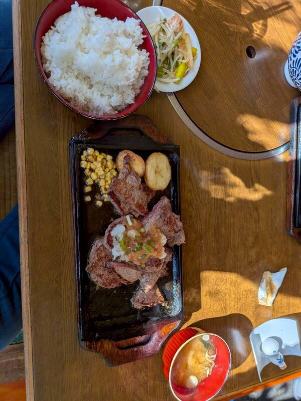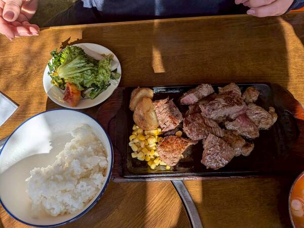 牛ロースステーキ!ライス、味噌汁付きです。
